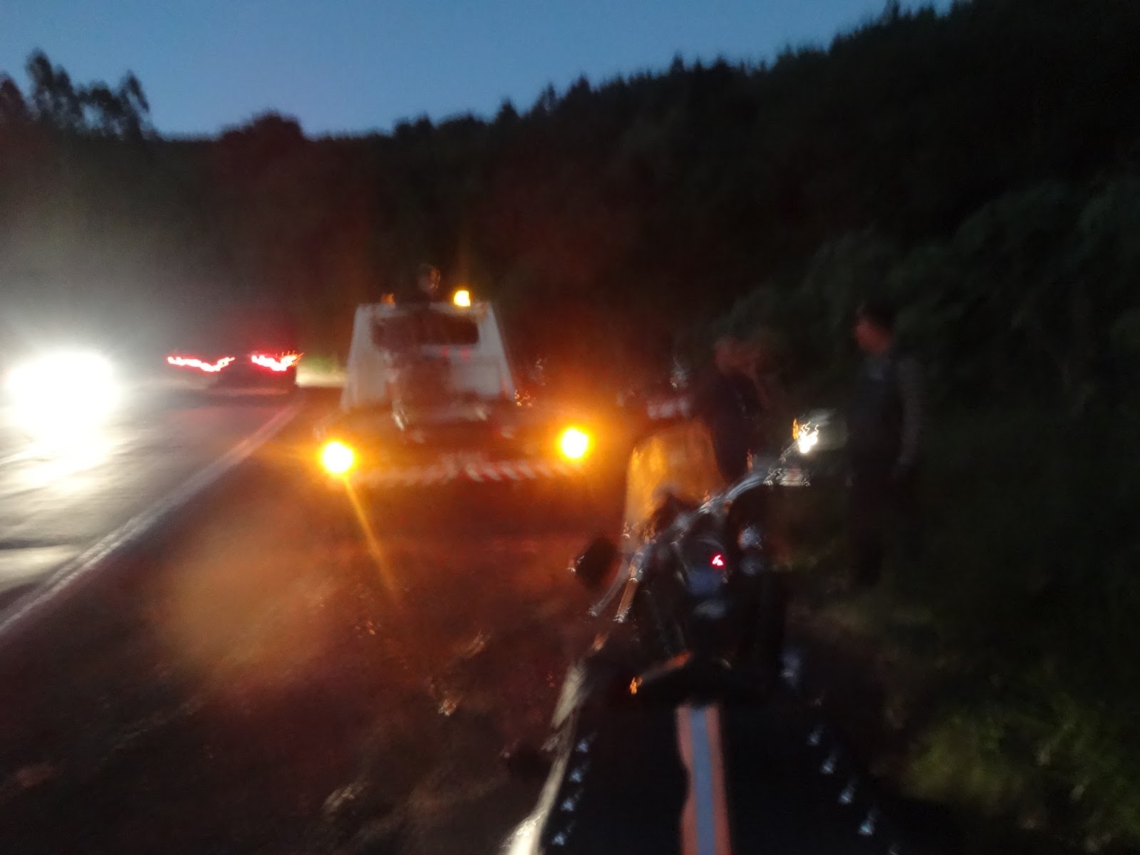 Pedro e eu tocamos em frente, logo a seguir e bem mais atrás, o guincho, o Arli e a moto.